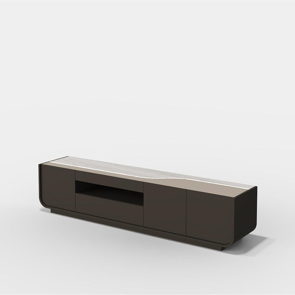 Com três portas, uma gaveta e um nicho aberto, a base oferece soluções práticas de arrumação. Ideal para equipamentos multimédia, acessórios e objetos decorativos, alia utilidade a uma estética sofisticada.