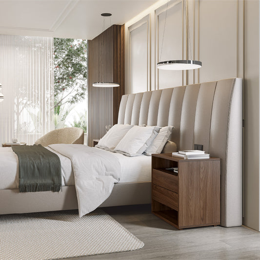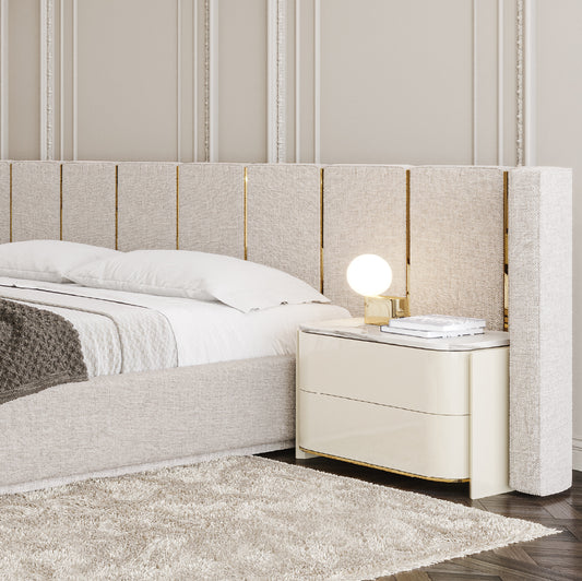 Mesas de cabeceira sofisticadas, perfeitas para complementar a decoração do seu quarto com funcionalidade. Feitas com acabamentos refinados, estas peças são ideais para manter os seus itens essenciais ao alcance, criando um espaço mais organizado e harmonioso.