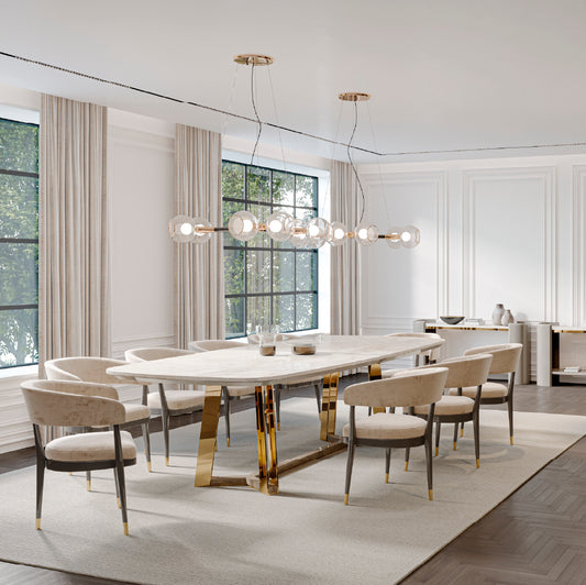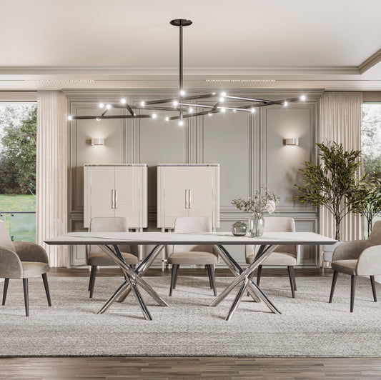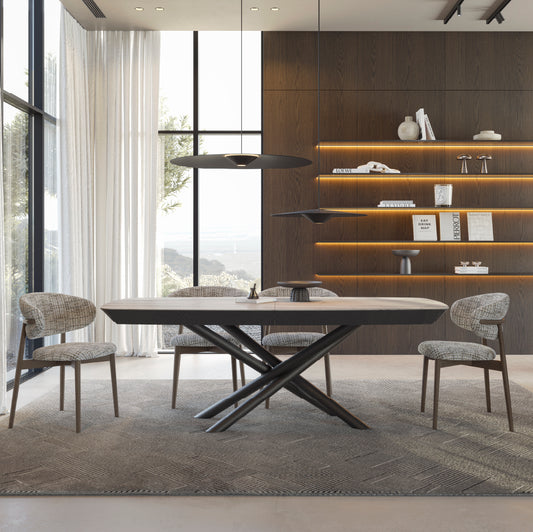 Mesas de jantar modernas e personalizáveis, produzidas com materiais premium e duradouros. Perfeitas para criar um ambiente sofisticado e acolhedor, as nossas mesas de jantar podem ser extensíveis, para 4, 6 ou 8 lugares, ou redondas, adaptando-se ao seu estilo e espaço.