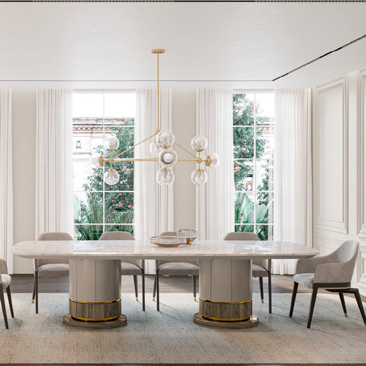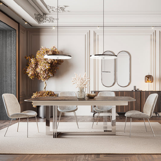 Mesas de jantar modernas e personalizáveis, produzidas com materiais premium e duradouros. Perfeitas para criar um ambiente sofisticado e acolhedor, as nossas mesas de jantar podem ser extensíveis, para 4, 6 ou 8 lugares, ou redondas, adaptando-se ao seu estilo e espaço.