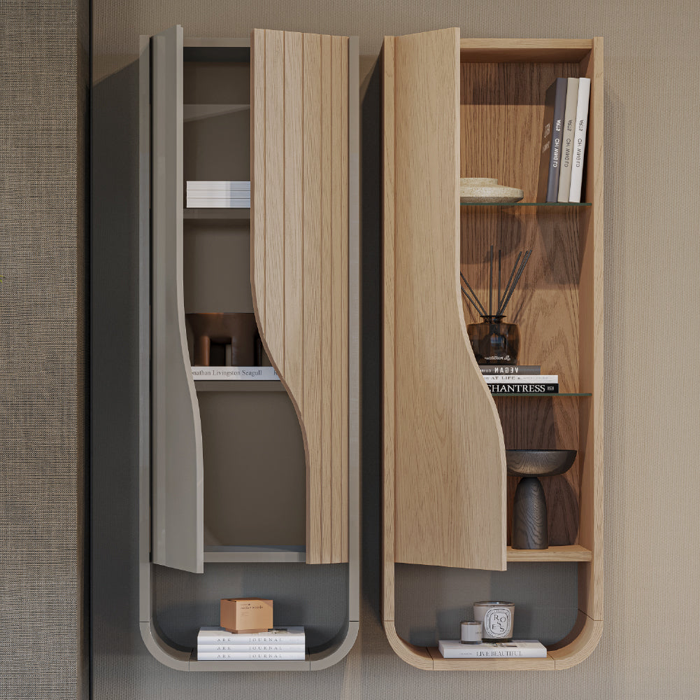 As portas fechadas e os nichos abertos do Alçado Linard proporcionam um equilíbrio perfeito entre funcionalidade e estilo. Esta combinação permite exibir objetos decorativos enquanto mantém a discrição em outros elementos. Assim, a sala de estar ganha uma nova dinâmica, onde o design se alia à praticidade.