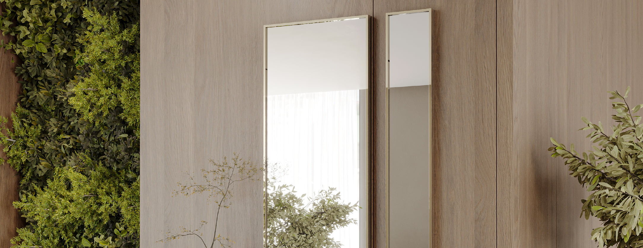 Com formato alto e estreito de 35 cm de largura, o Espelho Retangular reforça a sensação de amplitude no hall. A proporção estudada torna-o ideal para composições em série ou isolado, adaptando-se a qualquer estilo contemporâneo.
