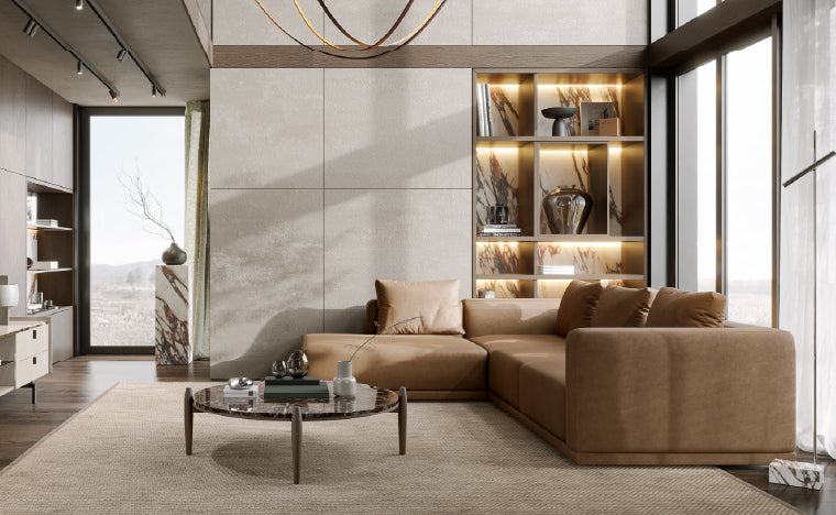 Revestido com estofo aveludado e almofadas generosas, o Sofá Colline convida a permanecer. Cada elemento foi pensado para criar uma sensação de acolhimento discreto, elevando o quotidiano com conforto e um toque de sofisticação silenciosa.