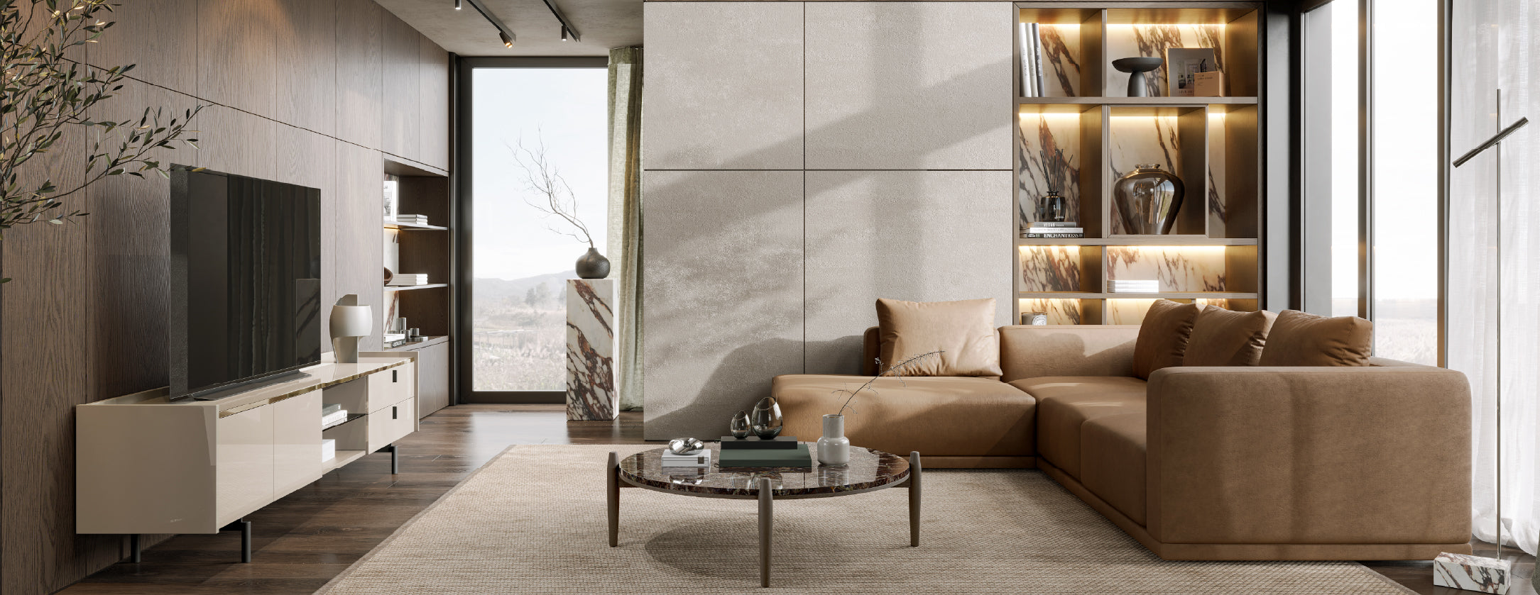 O revestimento do Sofá Colline, com textura suave e acabamento mate, convida ao toque e reforça o carácter sensorial da peça. Um sofá que acompanha o estilo de vida contemporâneo, elevando a atmosfera da sala de estar com subtileza e sofisticação.