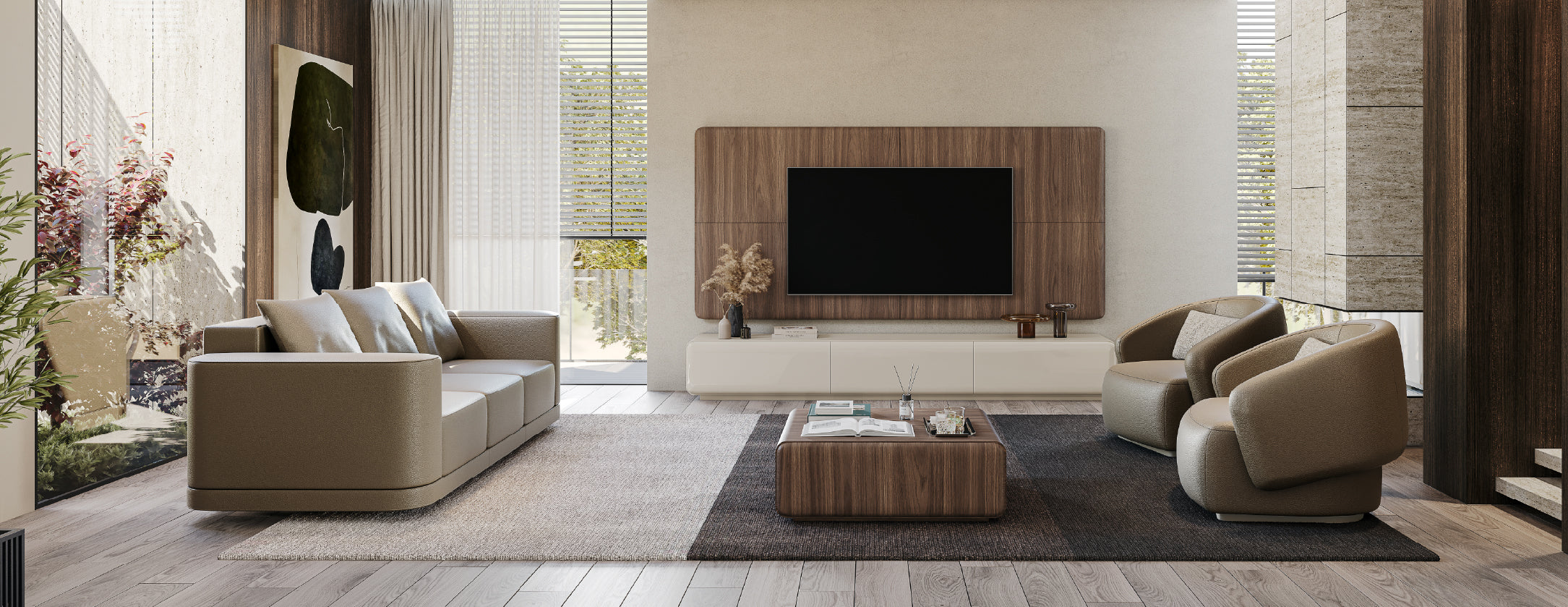 Acabamentos personalizáveis que realçam a madeira e tecidos