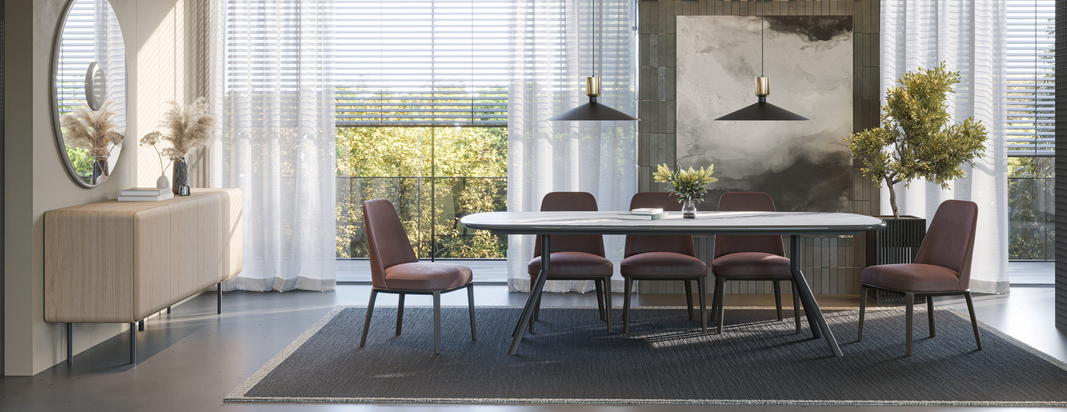 Esta mesa ofrece confort y amplitud, ideal para recibir familiares y amigos con una estética contemporánea y equilibrada.