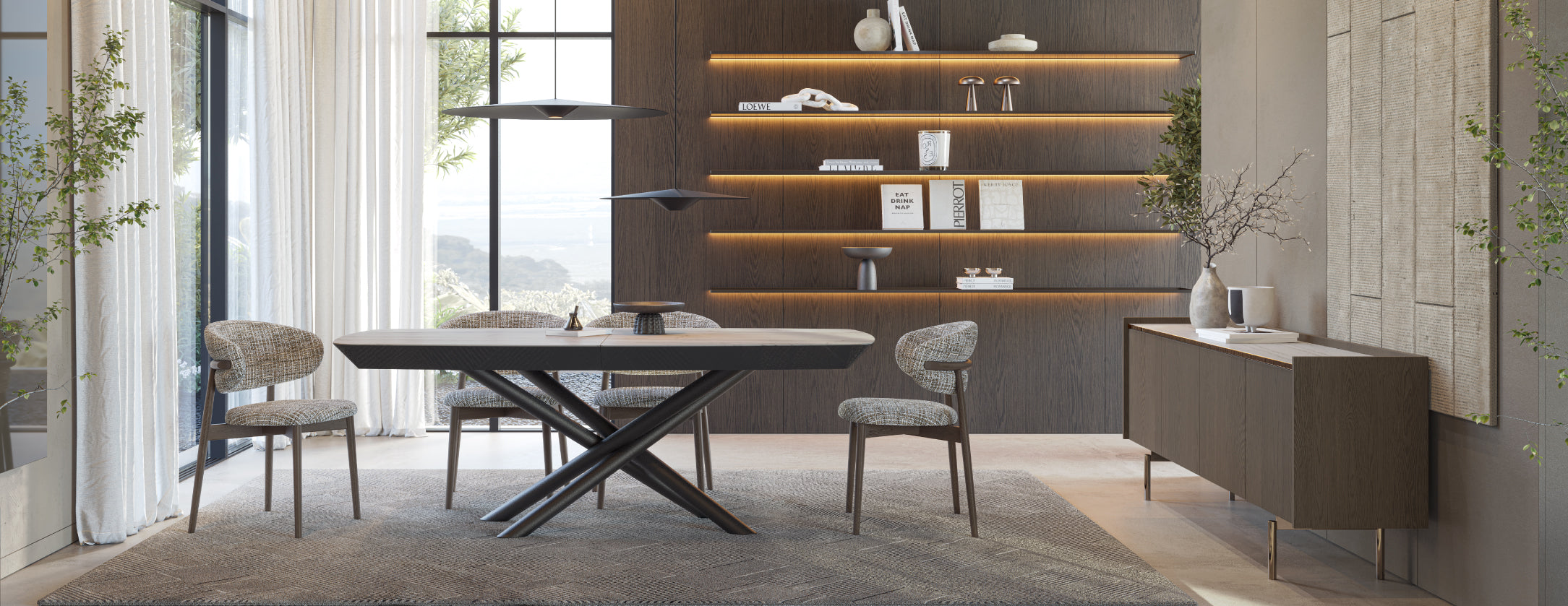 A Mesa Sottile apresenta linhas contemporâneas e proporções equilibradas, resultando numa peça que combina presença visual e conforto. Ideal para ambientes de sala de jantar modernos.