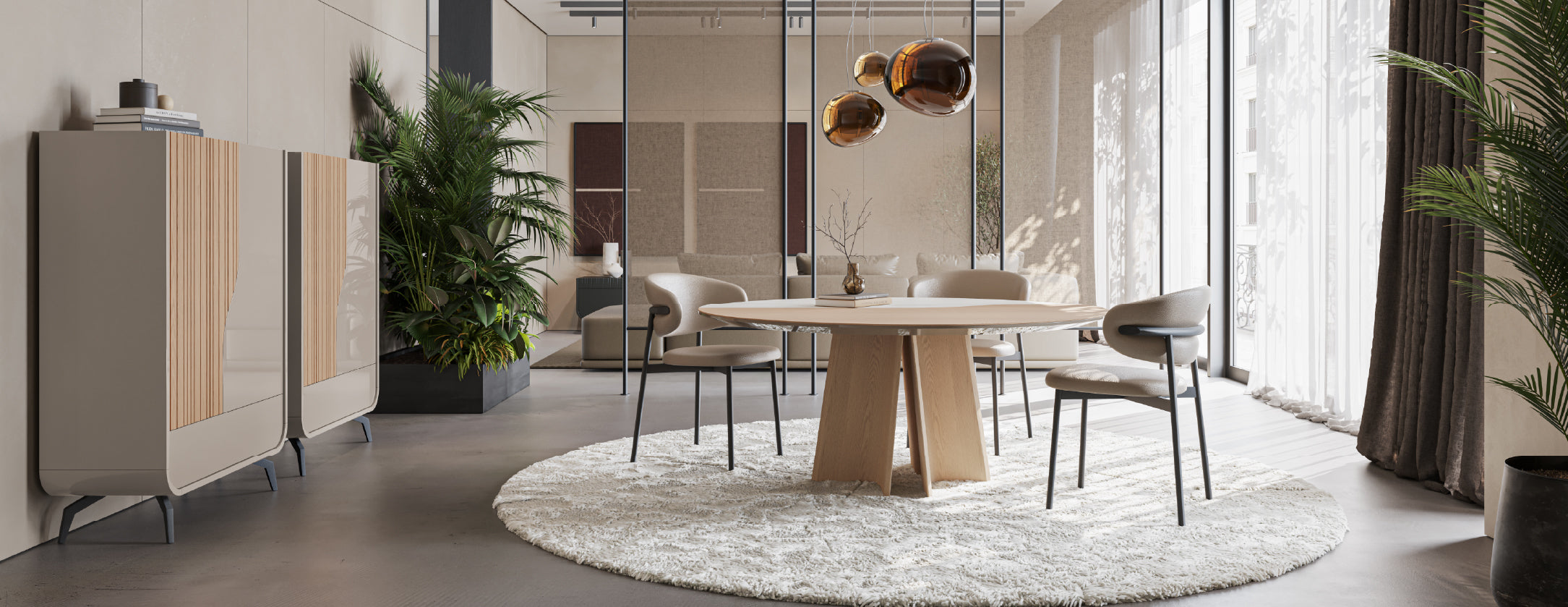 O Móvel de Bar Linard com Rodapé foi concebido para acrescentar distinção à sala de jantar, unindo estética contemporânea e funcionalidade. O rodapé contínuo transmite estabilidade e presença marcante, enquanto a combinação de lacados e madeiras reforça o carácter exclusivo da peça.