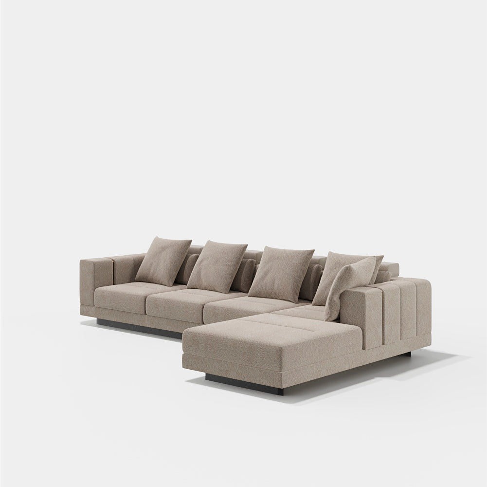 O Sofá Vercelli com chaise à direita apresenta uma escala generosa e proporções bem definidas, ideal para composições amplas. Uma peça central que organiza a sala de estar com presença e funcionalidade.